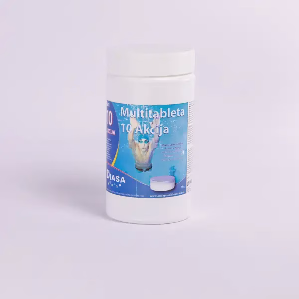 Multi tablete 10 u 1 predstavljaju višenamensko sredstvo za potpunu negu bazenske vode, kombinujući čak deset funkcija u jednoj tableti: dezinfekcija, antibakterijska zaštita, algicid, flokulacija, stabilizacija, regulacija pH i hlora, poliranje vode, održavanje i antialergijsko dejstvo.