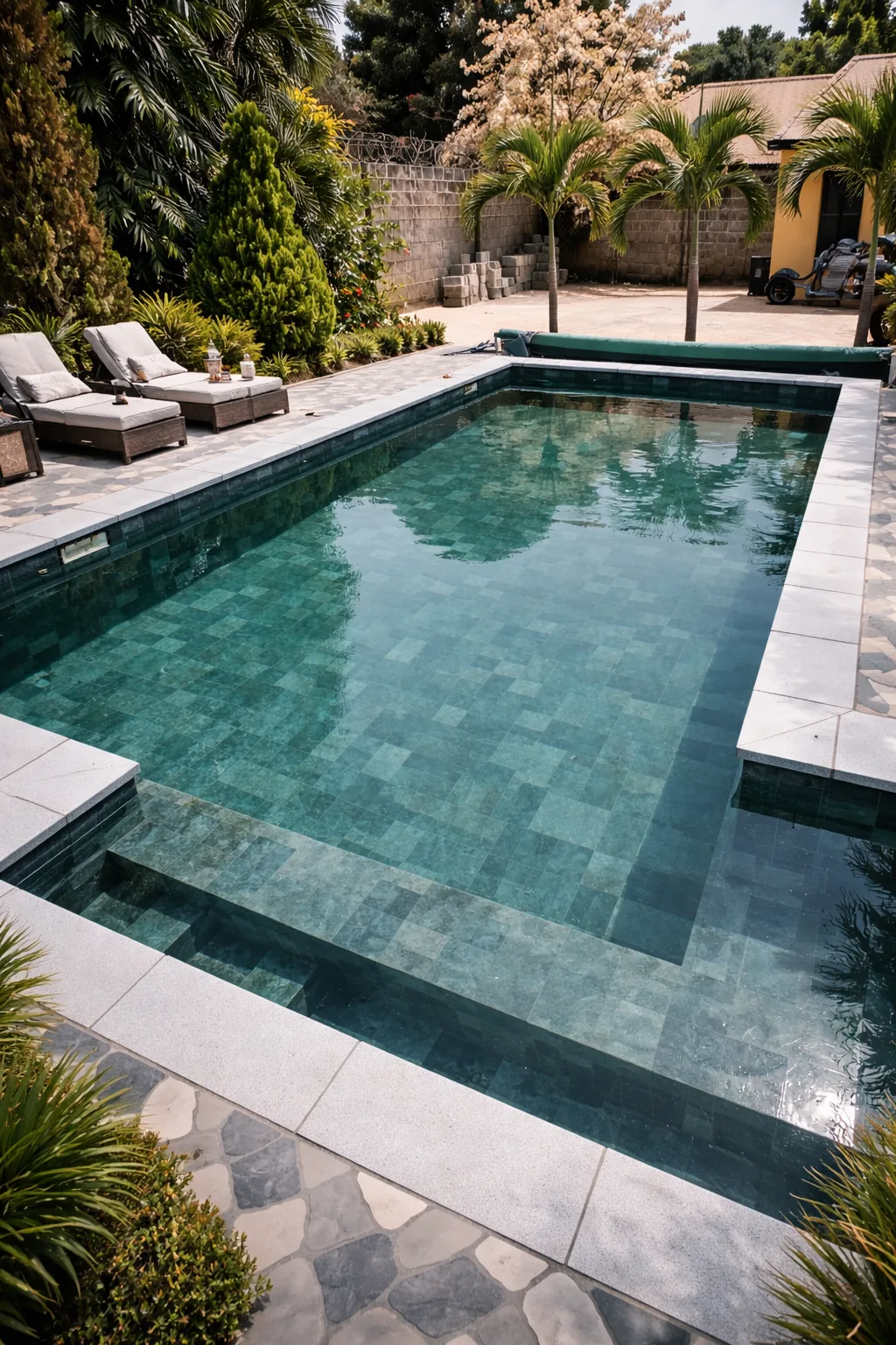 Cefil Nature Jade donosi autentičan prirodni izgled koji podseća na egzotične lagune i mirna jezera. Kombinacija zelenih i plavičastih nijansi reflektuje svetlost i stvara opuštajući, luksuzan ambijent – savršen za dvorišne bazene, vile, hotele i spa centre.