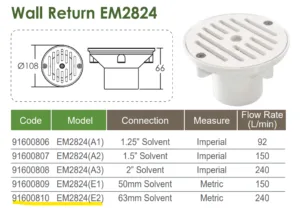 Mlaznica usisna beton fi63 sa rešetkom 14,4 m3/h Emaux (EM2824)