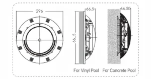 Reflektor je izrađen od otpornog i vodootpornog materijala, pogodan za montažu na bočnu stranu bazena (nadzidno), bilo u betonske ili PVC lajner bazene uz odgovarajući set za montažu. Dizajniran je da izdrži uticaje vlage, UV zračenja i hemijskih tretmana vode, čime se obezbeđuje dugotrajno i pouzdano funkcionisanje.