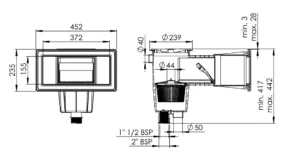 Skimer standardni otvor Astral dizajniran je za betonske bazene i omogućava efikasno uklanjanje površinskih nečistoća iz vode uz protok do 5 m³/h.