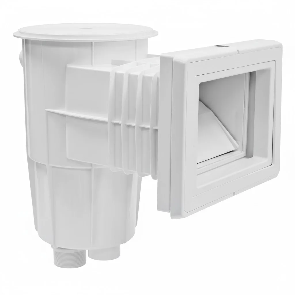 Ugrađuje se u zid bazena, tačno na vodenu liniju, i povezuje se sa sistemom filtracije kroz standardne priključke.