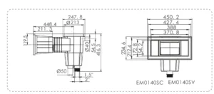 Skimer Širok Beton 6/4″ 5 m³ 15L Emaux predstavlja idealno rešenje za betonske bazene kod kojih je potrebna veća površina usisa. Dimenzije skimera su 450 x 235 mm. Zahvaljujući širokom otvoru, skimer efikasnije prikuplja lišće, insekte i ostale nečistoće sa površine vode, čime se poboljšava ukupna cirkulacija i kvalitet bazenske vode. Izrađen je od visokokvalitetne plastike otporne na UV zračenje, bazensku hemiju i spoljne uticaje, što obezbeđuje dugotrajan i pouzdan rad. Standardni priključak 6/4″ omogućava lako povezivanje sa sistemom filtracije.