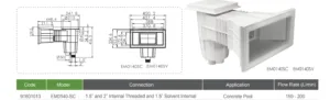 Skimer širokog otvora Emaux 6/4″ namenjen je betonskim bazenima i omogućava efikasnije sakupljanje površinskih nečistoća uz stabilan protok do 5 m³/h.