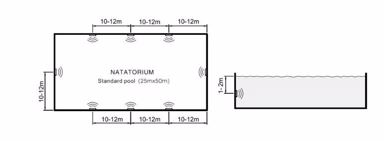 Pravilan broj zvučnika obezbeđuje optimalnu jačinu i ravnomernu distribuciju zvuka u celom bazenu.