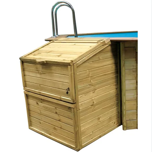 Ova serija drvenih kabina izrađena je od severnog bora tretiranog autoklavom klase III, dizajnirana tako da se savršeno uklopi sa različitim visinama nadzemnih bazena i svim tipovima bazena. Kabine služe kao praktičan i estetski način da se sakrije i zaštiti dodatna oprema za bazen, poput filtera, uređaja za čišćenje ili električnog creva, smanjujući rizik od oštećenja ili nezgoda.
