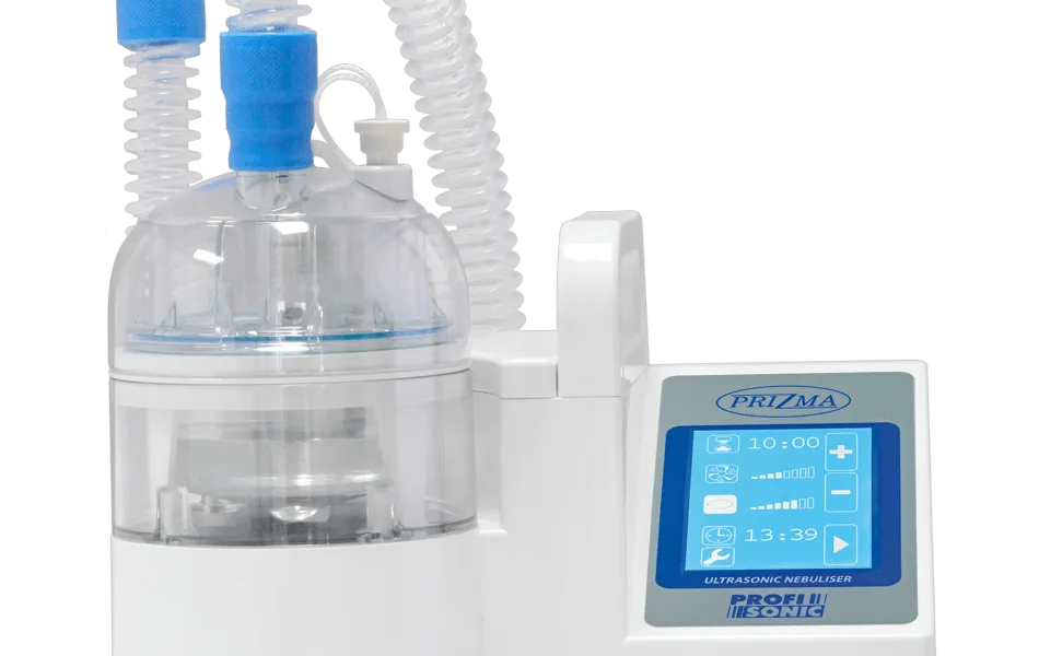 Prizma PROFI SONIC Nebulizer – napredni inhalator za velike serije inhalacija sa LCD touch screen-om, silikonskim crevom i opcijom kontinuiranog dodavanja leka, za sve uzraste.