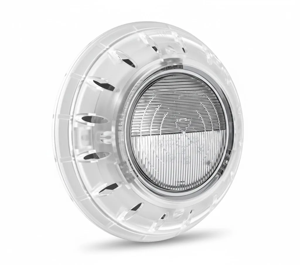 Reflektor ima snagu 25 W i radi na 12 V niskom naponu, što je standard za bazensku rasvetu i obezbeđuje bezbedan i efikasan rad. Konstrukcija svetla koristi materijal ABS plastiku i UV stabilizator, a poseduje IP68 vodootpornu zaštitu, što omogućava potpuno potapanje i dugotrajan rad pod vodom. E-Lumen X-Quarts model se lako montira na zid koristeći postojeće spojnice ili retro-fit adaptere, prilagodljiv različitim tipovima bazena.