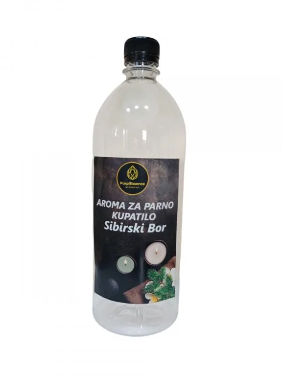 Miris za parno kupatilo Bor 1L izrađen od 100% prirodnih esencijalnih ulja. Osvežavajuća aroma sibirskog bora podstiče relaksaciju, detoksikaciju, osvežava disajne puteve i smanjuje stres tokom spa i wellness tretmana.
