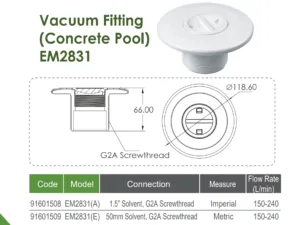 Mlaznica usisna beton 2″ 4 m³/h Emaux je ugradni element namenjen efikasnom usisu vode u betonskim bazenima, obezbeđujući stabilan rad sistema filtracije.