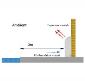Uređaj može biti postavljen na pod ili na zid, uz obezbeđenu adekvatnu odvodnju kondenzata prema smernicama proizvođača.