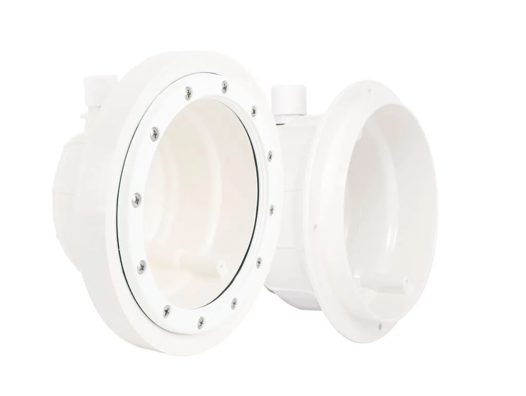 Kućište je izrađeno od kvalitetnih materijala otpornih na vlagu, UV zračenje i bazensku hemiju, što garantuje dugotrajan rad i stabilnost instalacije. Precizno oblikovan otvor i unutrašnja geometrija omogućavaju čvrsto postavljanje svetla uz odgovarajuće zaptivke i O-prstenove.