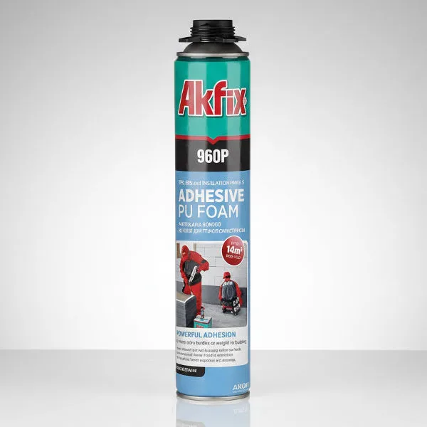 Akfix 960P je poliuretanska pena u spreju, namenjena za lepljenje različitih građevinskih materijala. Pena brzo reaguje sa vlagom i stvara čvrstu vezu, posebno pogodnu za termoizolacione sisteme.