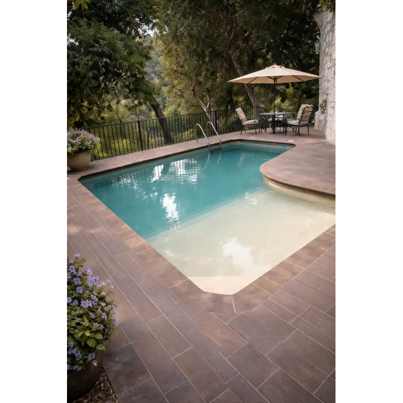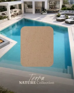 Dekor Terra sa toplim zemljanim nijansama vodi daje nežnu, svetloplavo-bež do blago smeđu nijansu, stvarajući efekat prirodnog jezera ili mirnog ribnjaka. Ovaj vizuelni efekat zavisi od osvetljenja i okoline bazena, čineći svaki projekat jedinstvenim i prijatnim za oko.