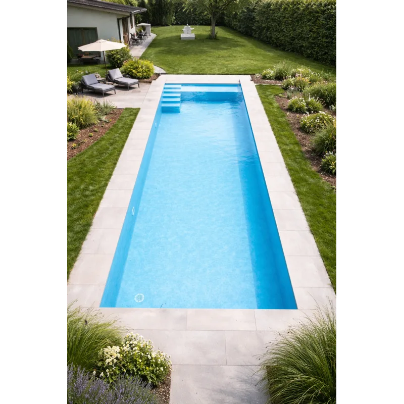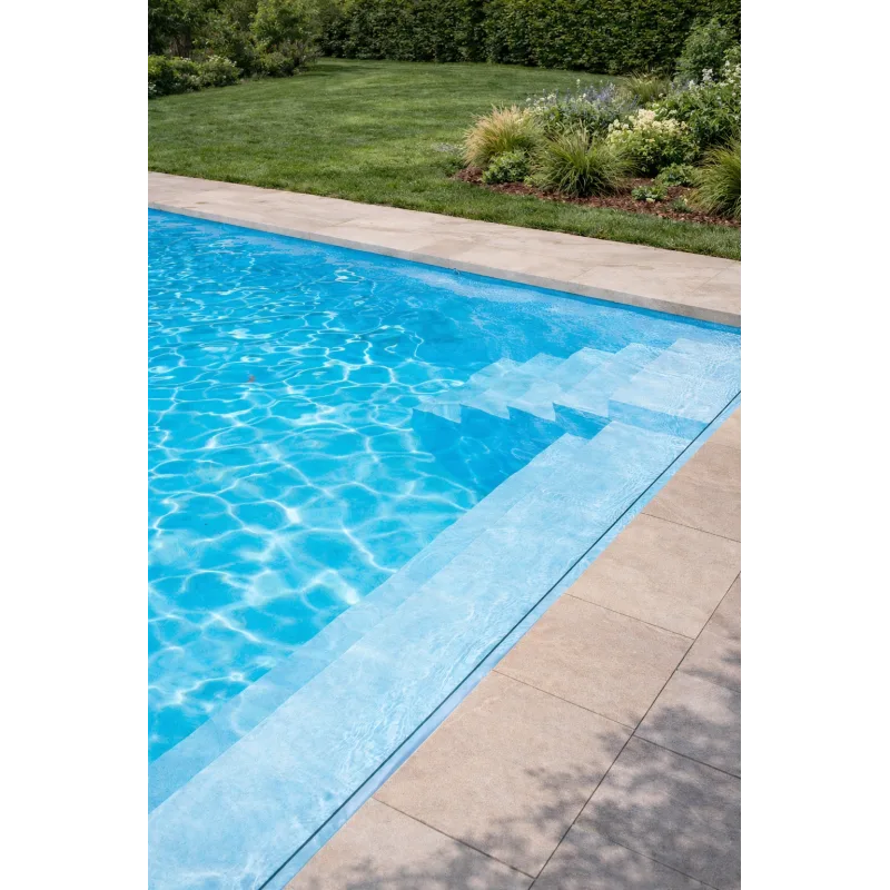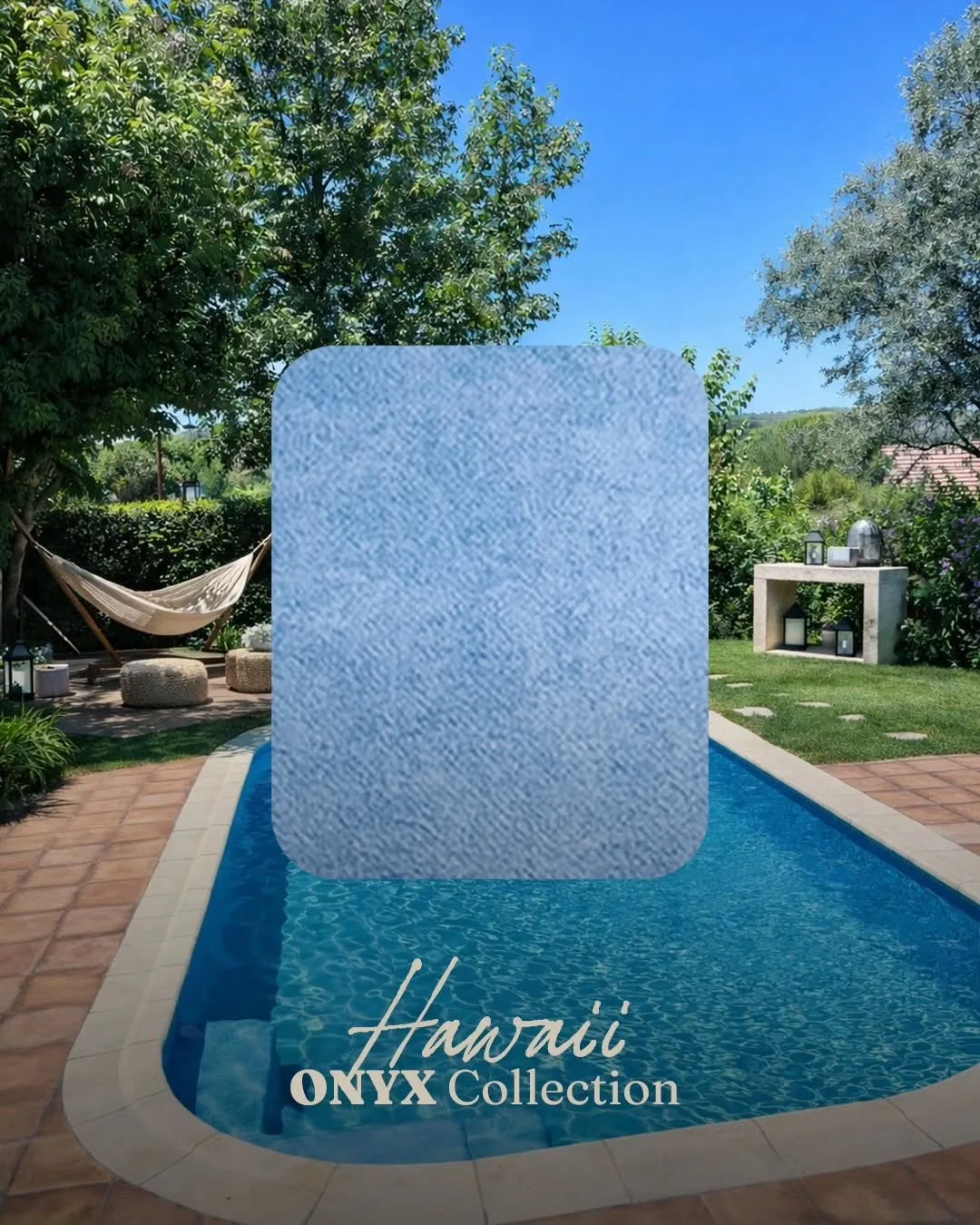 Dekor Hawaii stvara duboke plavo-tirkizne tonove sa suptilnim oniks efektom, dajući vodi luksuznu i kristalno jasnu nijansu. Boja i refleksija variraju u zavisnosti od osvetljenja i okruženja bazena, čime svaki bazen dobija jedinstven vizuelni identitet i moderan, ekskluzivan izgled.