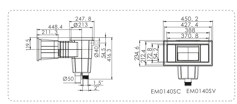 Главная страница › Магазин › Бассейны › Бетонный скиммер широкого диаметра 6/4″, 5 м3, Emaux (91601013)