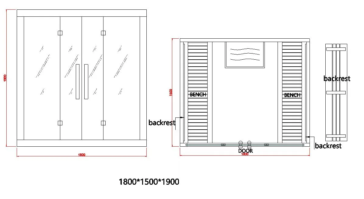 Размеры 1800 × 1500 × 1900 mm omogućavaju komforno korišćenje za tri osobe, bilo da je u pitanju porodično opuštanje ili druženje sa prijateljima. Sauna je opremljena snažnom peći od 6 kW (220V / 380V) koja omogućava brzo i ravnomerno zagrevanje prostora, stvarajući optimalne uslove za relaksaciju.