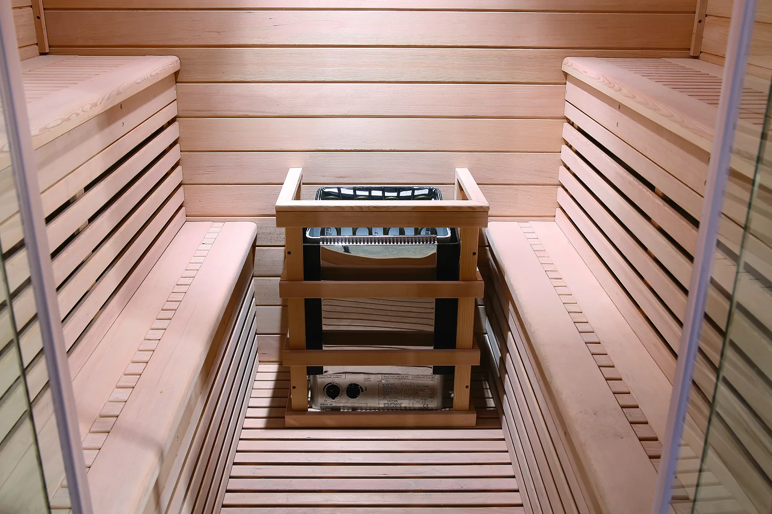 Размеры 1800 × 1500 × 1900 mm omogućavaju komforno korišćenje za tri osobe, bilo da je u pitanju porodično opuštanje ili druženje sa prijateljima. Sauna je opremljena snažnom peći od 6 kW (220V / 380V) koja omogućava brzo i ravnomerno zagrevanje prostora, stvarajući optimalne uslove za relaksaciju.