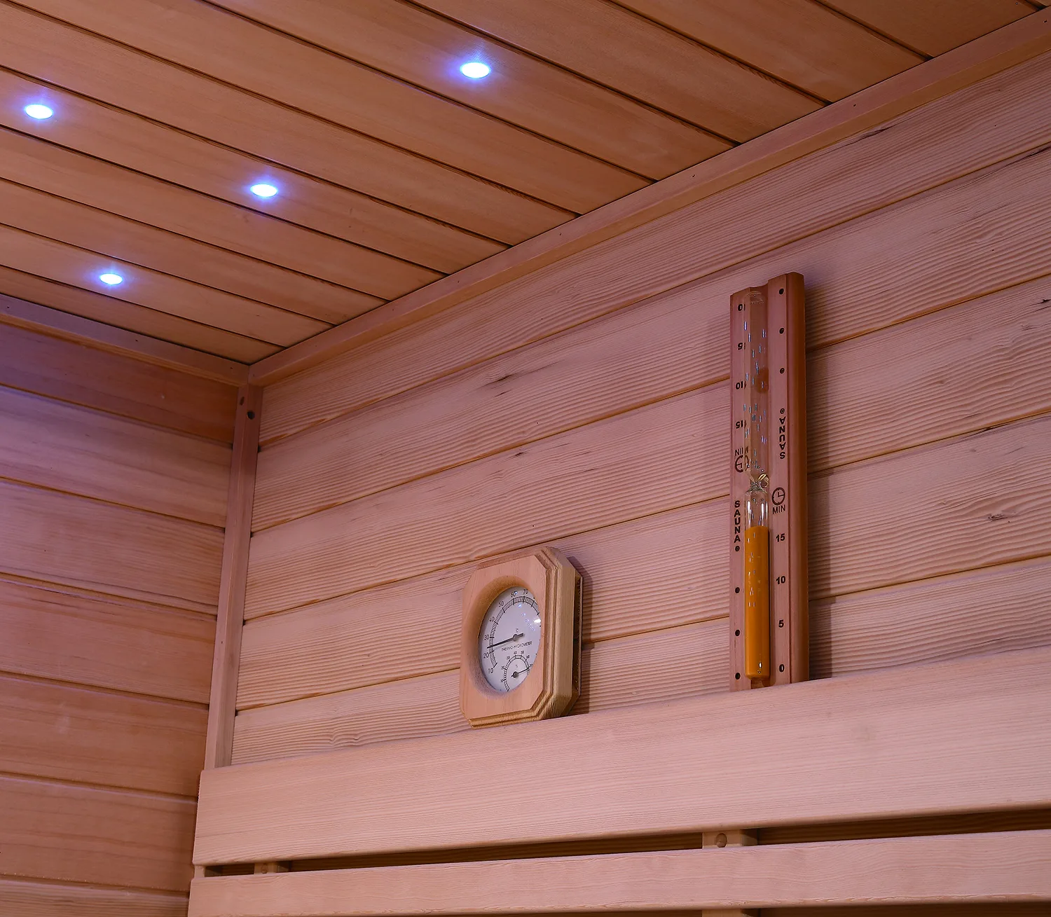 Za dodatni ugođaj, integrisana rasveta stvara toplu i prijatnu atmosferu, čineći svaku sesiju u sauni posebno opuštajućom. Elegantna Nero tamna završna obrada doprinosi modernom i luksuznom izgledu koji se lako uklapa u svaki enterijer.