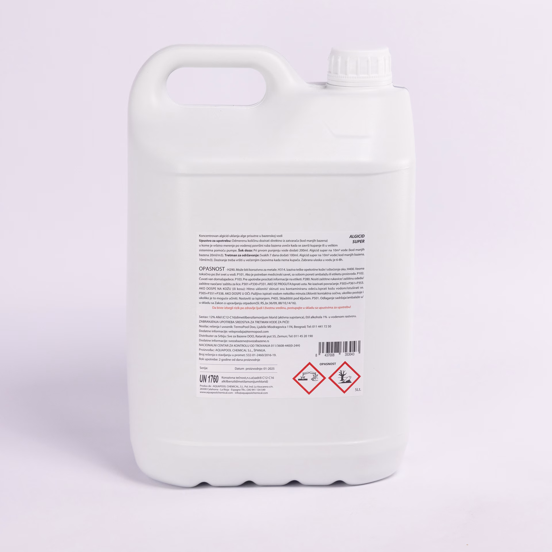 Концентрированное средство против водорослей эффективно удаляет уже существующие водоросли и предотвращает их повторный рост, сохраняя воду в бассейне чистой, прозрачной и безопасной для использования.