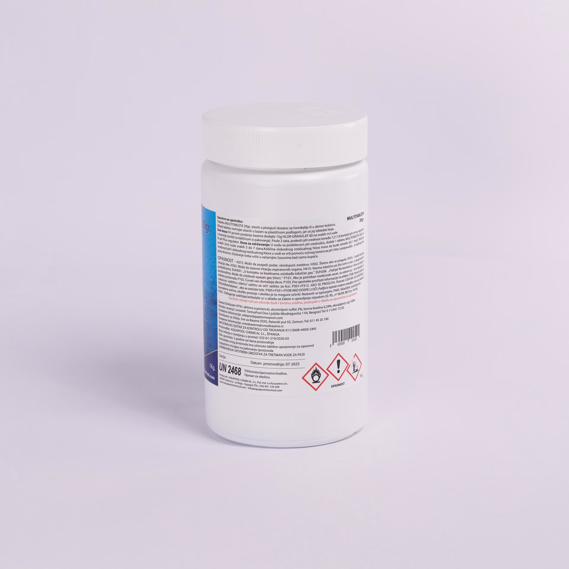 Синие мультитаблетки 5 в 1 (20 г) Это многофункциональный инструмент, предназначенный для дезинфекция и профилактическое обслуживание небольших бассейнов.который объединяет пять ключевых функций: дезинфекция, альгицидное действие, флокуляция, стабилизация хлором и антибактериальная защита..