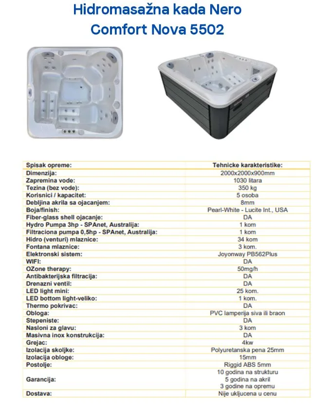 Hidromasažna kada Nero Comfort Nova 5502 – Spa uživanje za 5 osoba