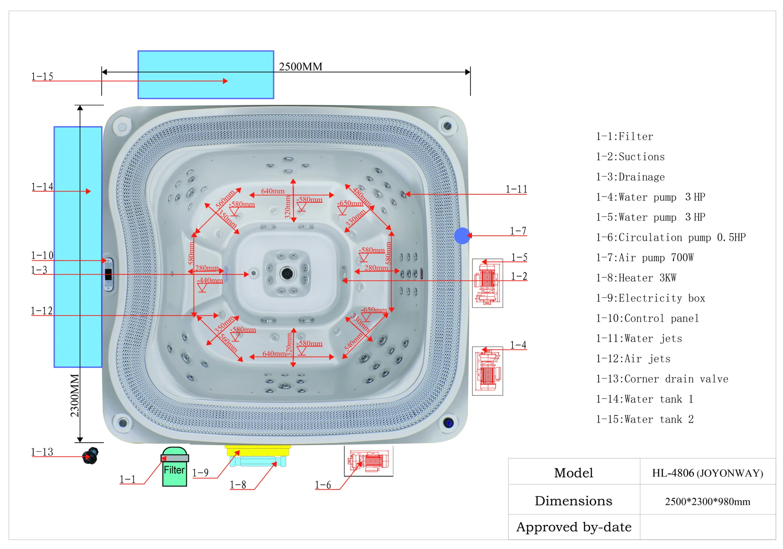 Размеры: 2500 × 2300 × 990 mm