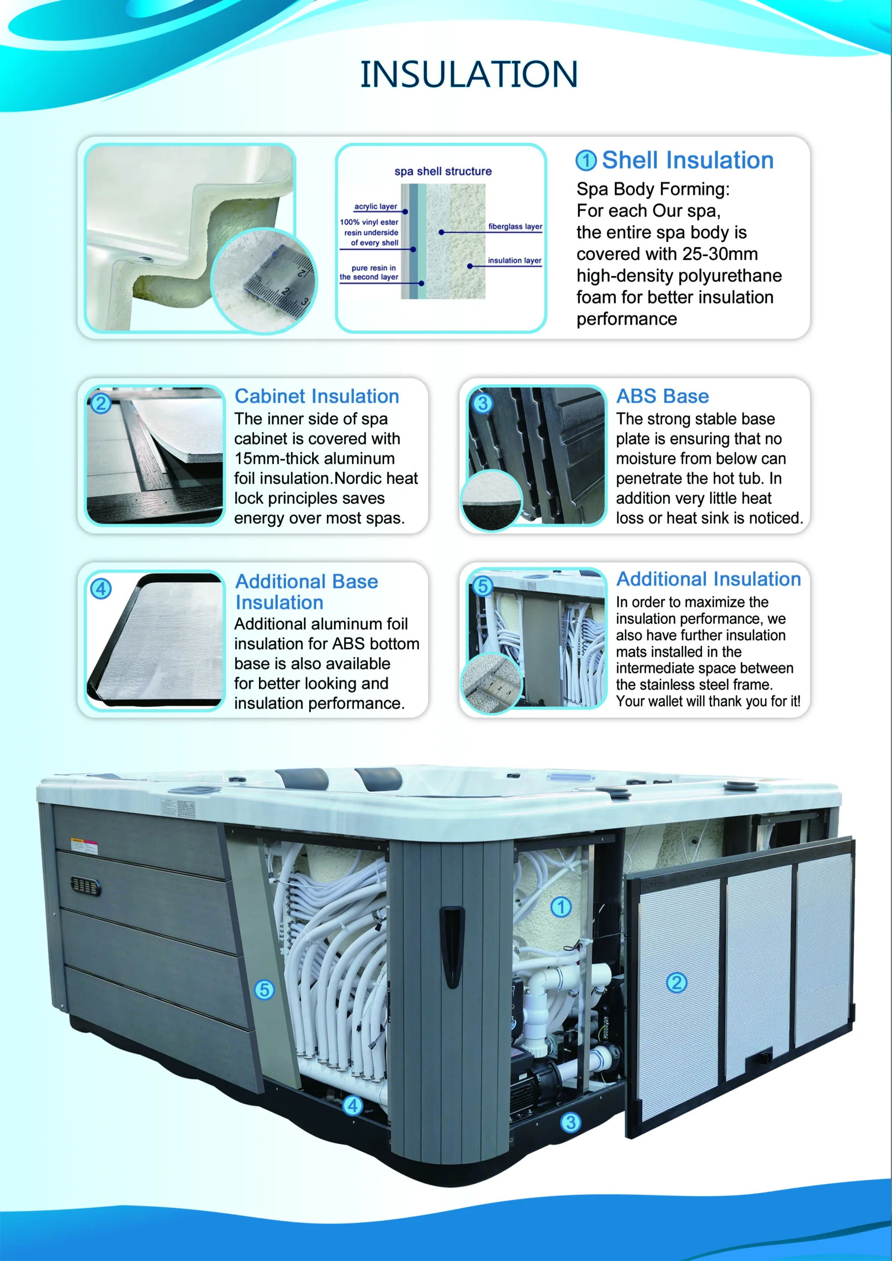 Potpuna spa oprema – WiFi kontrola, ozon terapija, antibakterijska filtracija, termo pokrivač, automatska dopuna i pražnjenje