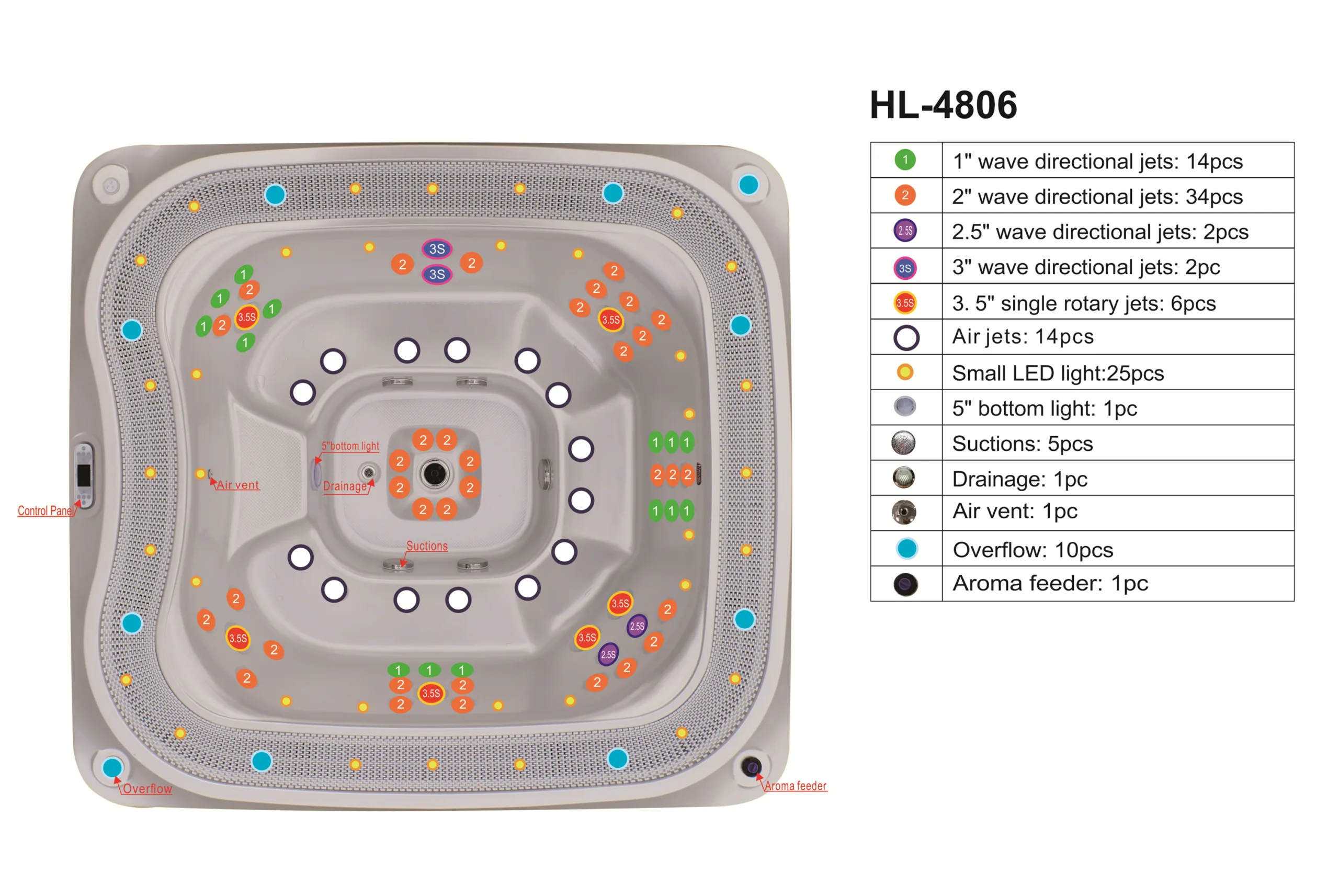 Hidro i aero masaža – 63 venturi mlaznice, 14 aero mlaznica i 3 fontane