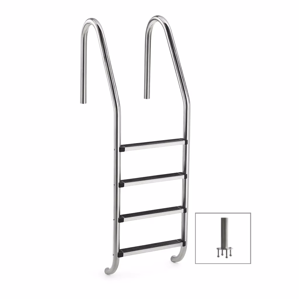 Merdevine Standard Nero AISI 304 – 4 step sa flanša montažom nude moderan dizajn, stabilnost i trajnost za sve tipove savremenih bazena.