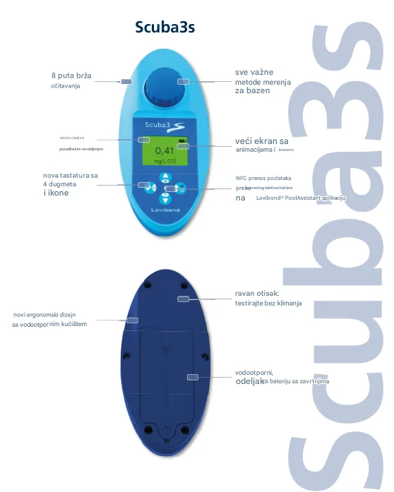 Scuba 3 Это новейшее поколение надежных электронных тестеров для бассейнов, разработанных для быстрого, простого и точного мониторинга ключевых параметров качества воды. Он предназначен для владельцев частных и профессиональных бассейнов, которые хотят получать безопасную и гигиеничную воду с минимальными затратами времени.