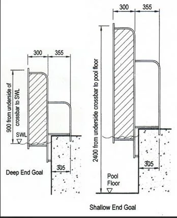 Unutrašnja širina između stubova iznosi 3 metra, dok je visina unutrašnje strane — od površine vode do donje ivice prečke — 0,90 metara. Ako je dubina vode manja od 1,50 m, visina se meri od dna bazena i iznosi 2,40 m. Obezbeđuju jasno označene zone za postizanje golova i doprinose dinamičnoj igri u vodi, bilo da se radi o ozbiljnom treningu ili opuštenoj igri sa prijateljima.