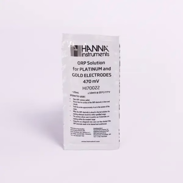 Hanna Instruments ORP pufer rastvor od 470 mV predstavlja standardizovanu referentnu tečnost namenjenu preciznoj kalibraciji ORP elektroda od platine i zlata. Koristi se u laboratorijama, industriji, preradi vode, bazenima, akvakulturi, hemijskim procesima i svim aplikacijama gde je neophodno pouzdano merenje oksidaciono–redukcijskog potencijala. Jednokratna kesica od 20 ml garantuje svežinu i tačnost svake kalibracije.