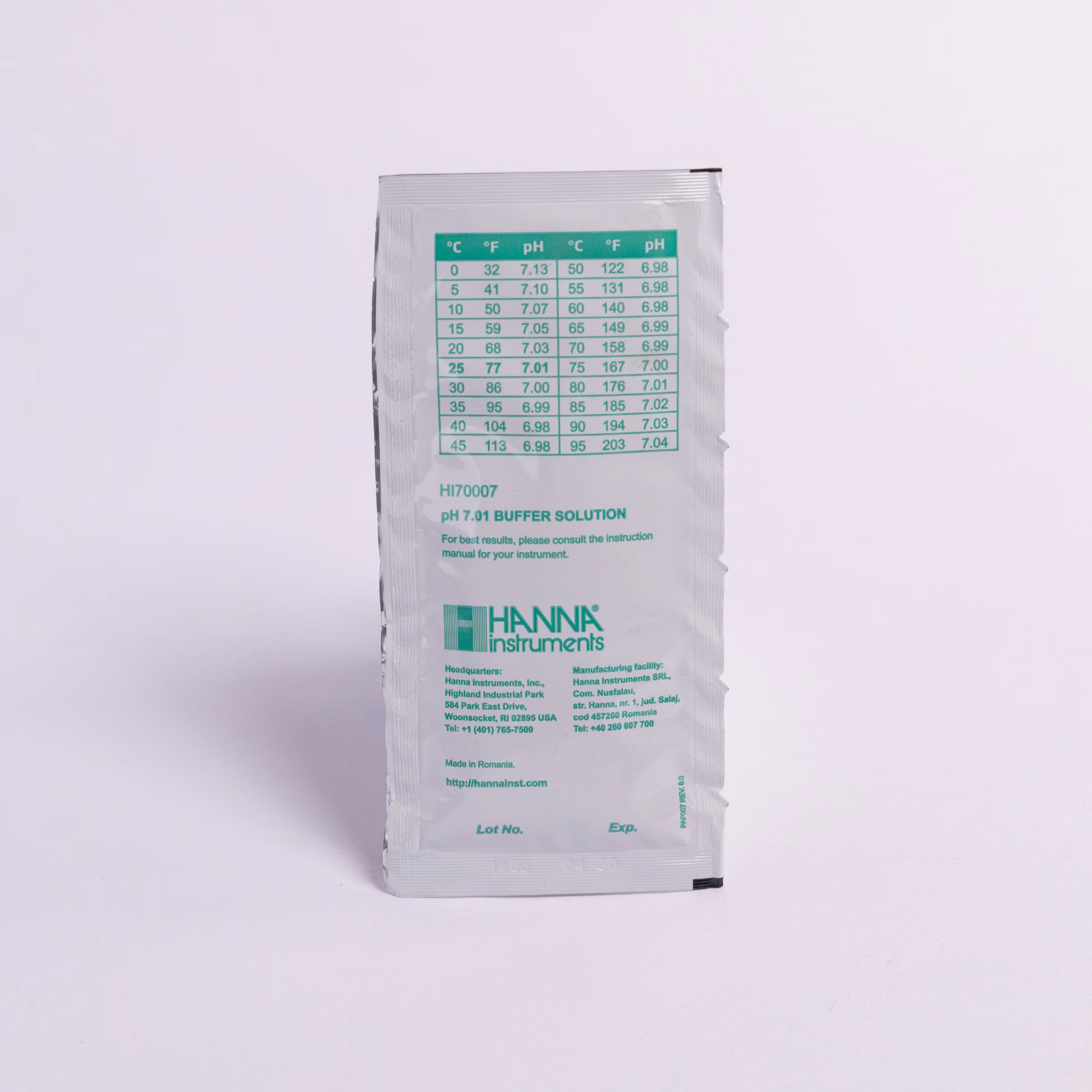 Hanna Instruments pH 7.01 tečnost za kalibraciju u kesici obezbeđuje pouzdanu neutralnu referencu za preciznu kalibraciju svih tipova pH metara