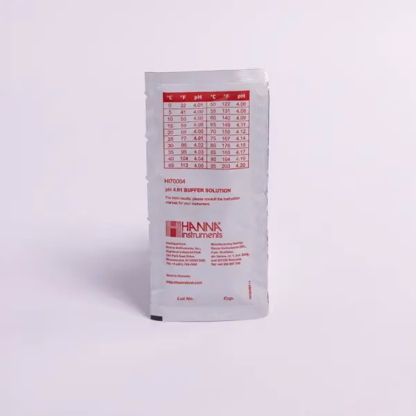 Hanna Instruments pH 4.01 kalibraciona tečnost u kesici (20 ml) je visokoprecizni pH buffer za tačno i pouzdano kalibrisanje pH‑metara.