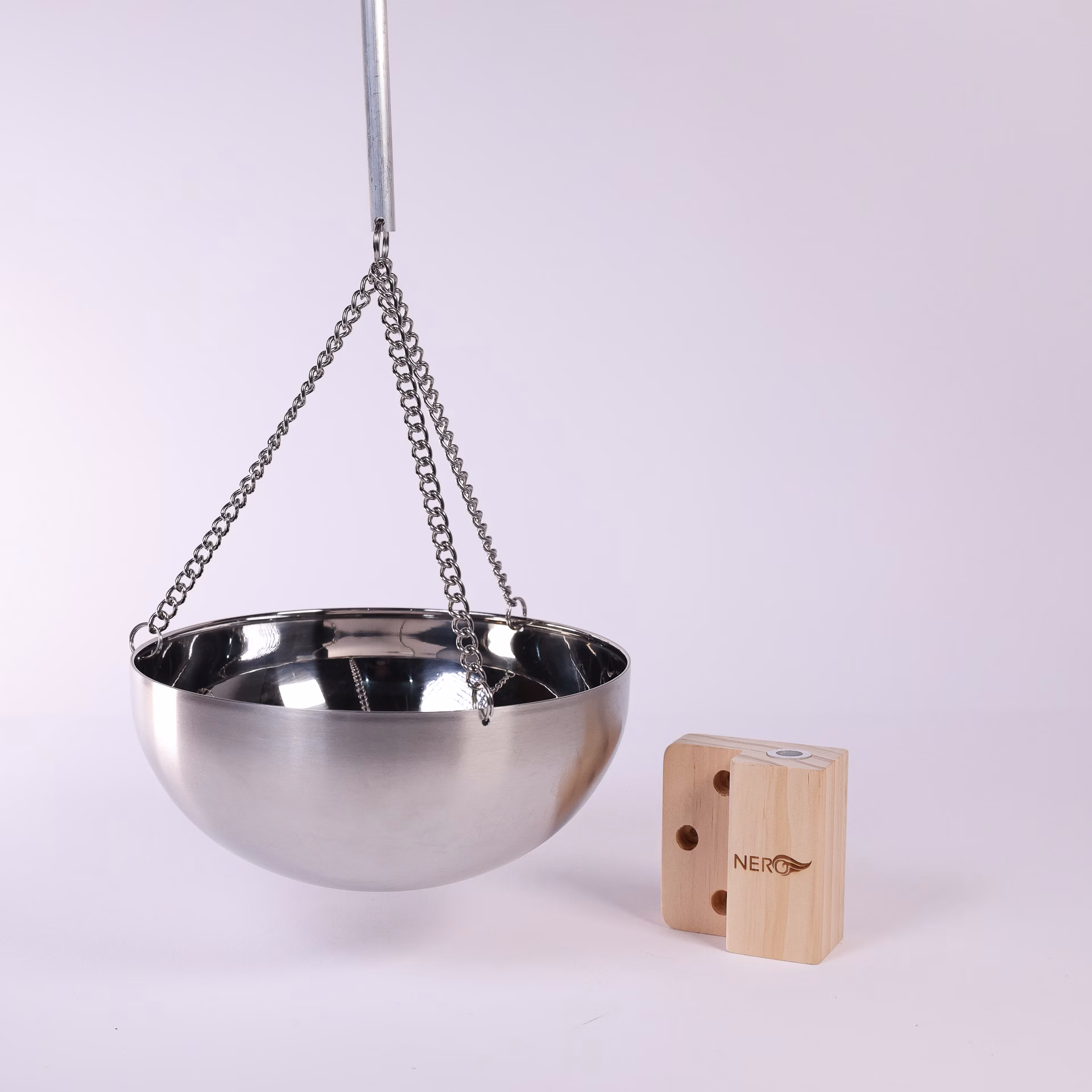 Nero W-S017 drži bocu mirisnog ulja stabilno tokom sauna seansi i omogućava precizno dodavanje aroma u prostor. Njegov moderan, crni dizajn u kombinaciji sa drvenom podlogom čini ga funkcionalnim i estetski privlačnim dodatkom za svaki sauna prostor.